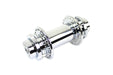 750 XR rear wheel hub is chrome plated and includes 2 nuts. For 40 spoke hole rims. Features knock off threaded end for quick change rear sprockets. Includes 11/16 bearings to fit stock sportster axles that are pre 1979 models and one chrome lock nut. Accepts 11/16 axle shaft and 6-8 gauge spokes. Accepts 38 tooth splined rear sprocket 49 tooth splined engine sprocket and 51 tooth splined engine sprocket. *NOTE: Alloy splined adapter is for sprocket and disc mounting. Disc mounting is a very close fit and should be tapped with rubber mallet - being careful not to damage splines. Order additional set of XR 750 hub lock nut separately.